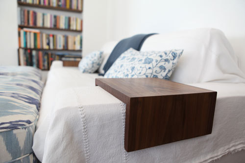 Don’t want a coffee table to take up precious space in your living area? It’s very simple to make your own armrest from wood. It can sit perfectly over the arm providing you with a convenient area for placing drinks, books, reading glasses or whatever you need. If you don’t fancy a DIY project, then consider a side table with a stand that easily slides under the chair, taking up little space.