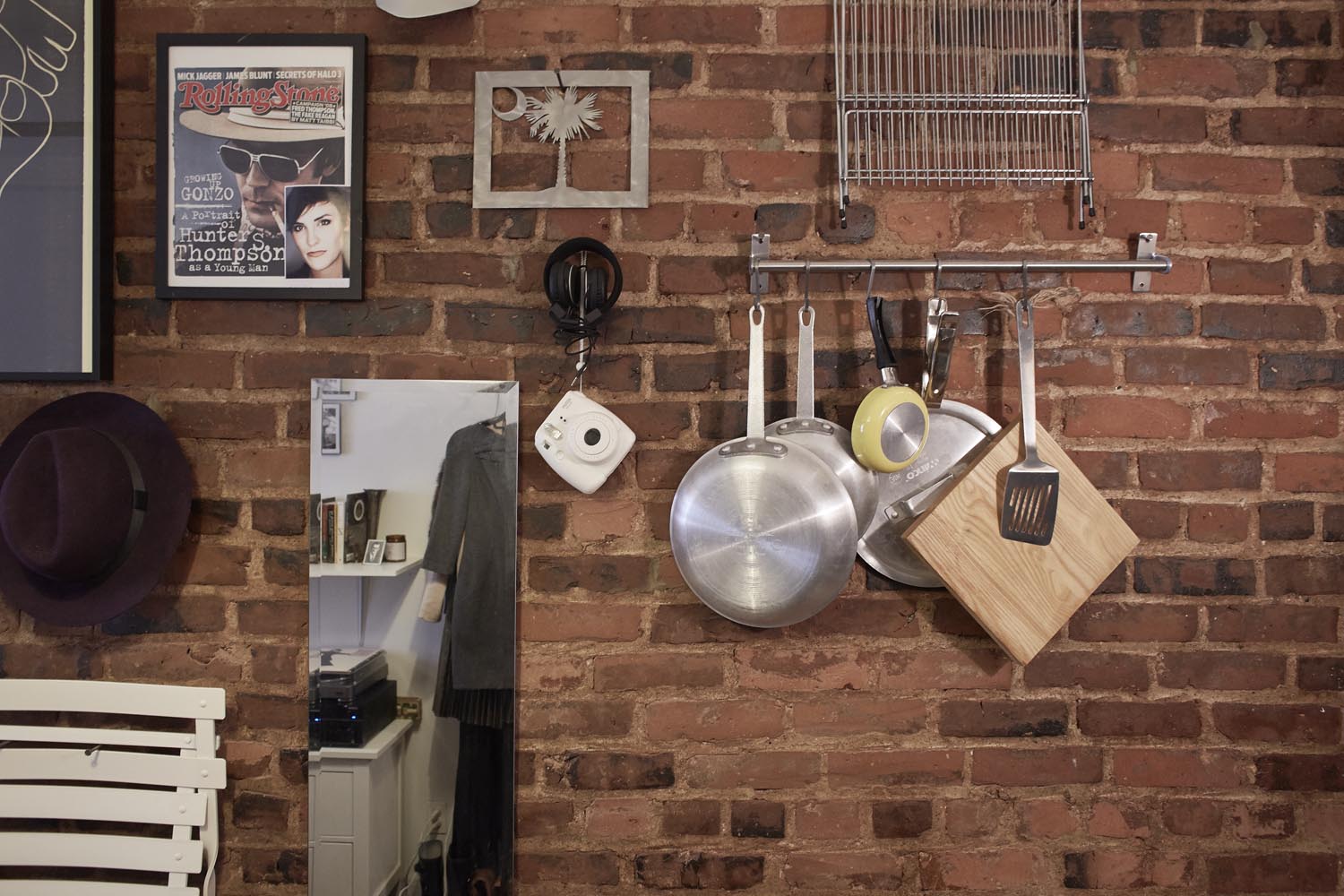The idea of the ‘faceout’ is that you hang up something on your wall with its face, or largest surface, parallel to the wall, looking back out at you. This simple trick alone saves a lot of space compared to the time-honored habit of hanging clothes in a shoulder-out position relative to the wall. That’s already robbing you of a foot or more of space, and in any case, when everything is hung ‘face out’, it’s like an aesthetically appealing wall display rather than a mere jumble of items taking up badly needed space.