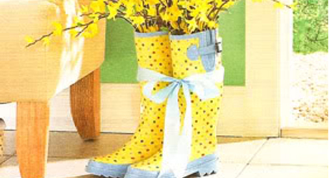 If you’ve got a bright, beautiful pair of rain boots stashed away that you just love, but really don’t wear enough, there is another way you can put them to good use: as Spring décor for your home! Sure this decorating tip is missing the classic eggs and bunnies, but it’s bright, colorful, simple, and could be used all season long. Or at least until you need your boots back. Just fill your boots (literally) with some bright fake flowers, and tie them with a bow.