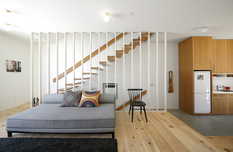 All of the natural light in this Fujiwarramuro Architects designed home helps it to feel much more spacious than it actually is. The open floor plan and ultra high ceilings draw the eye up, and the simplicity of the furnishings only enhances the home’s sleek, modern style. No packrats allowed!