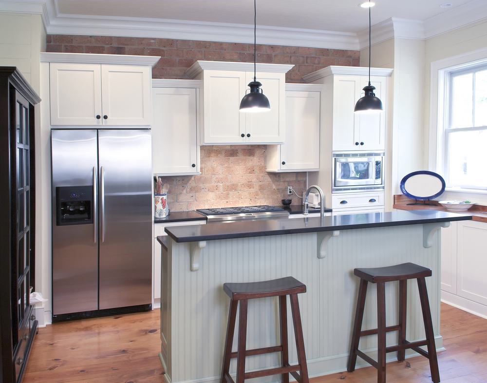 This is the simplest and cheapest way to renovate your kitchen cabinets. Sometimes all you need to spruce up a tired room is a fresh coat of paint. For example, your dark cabinets might be the reason why your kitchen feels like a dungeon. In this case, a brighter makeover doesn’t mean replacing the cabinets themselves. All you need is some strong cleaner, sandpaper, a paintbrush, and a bright color of paint and your cabinets will look brand new—for half the price!