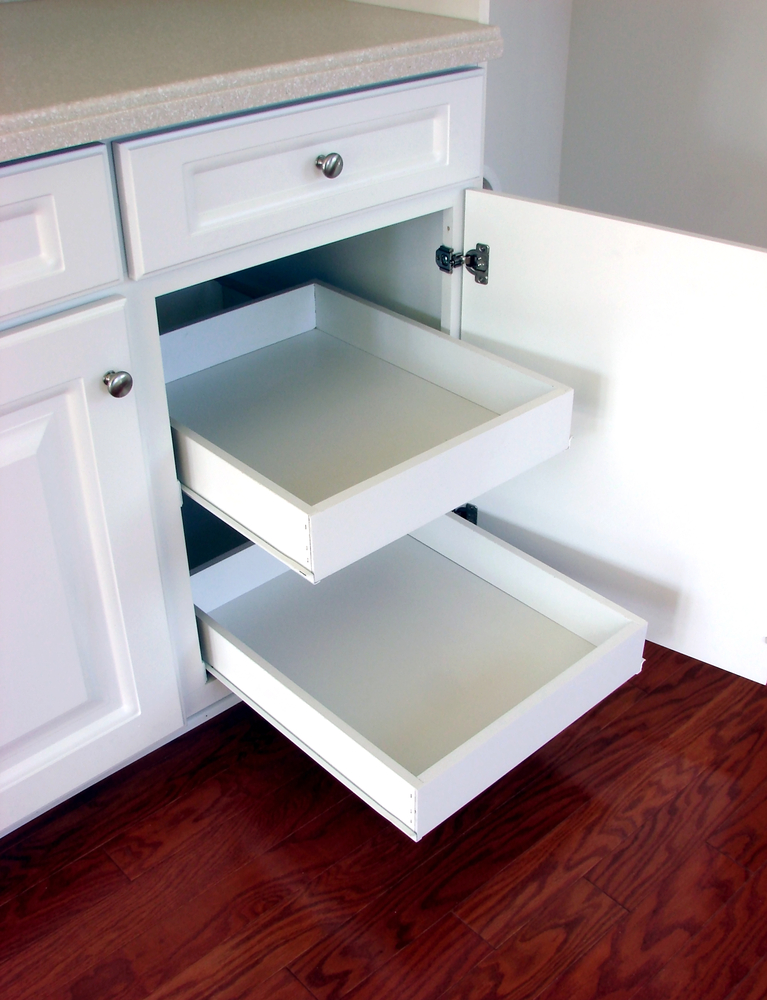 Make maximum use of your cabinet space by installing a pull-out shelf or lazy Susan for easy access to those hard-to-reach items at the back. While these may not change the exterior look of the cabinets, these practical alterations will make it feel like your cabinets are brand new.