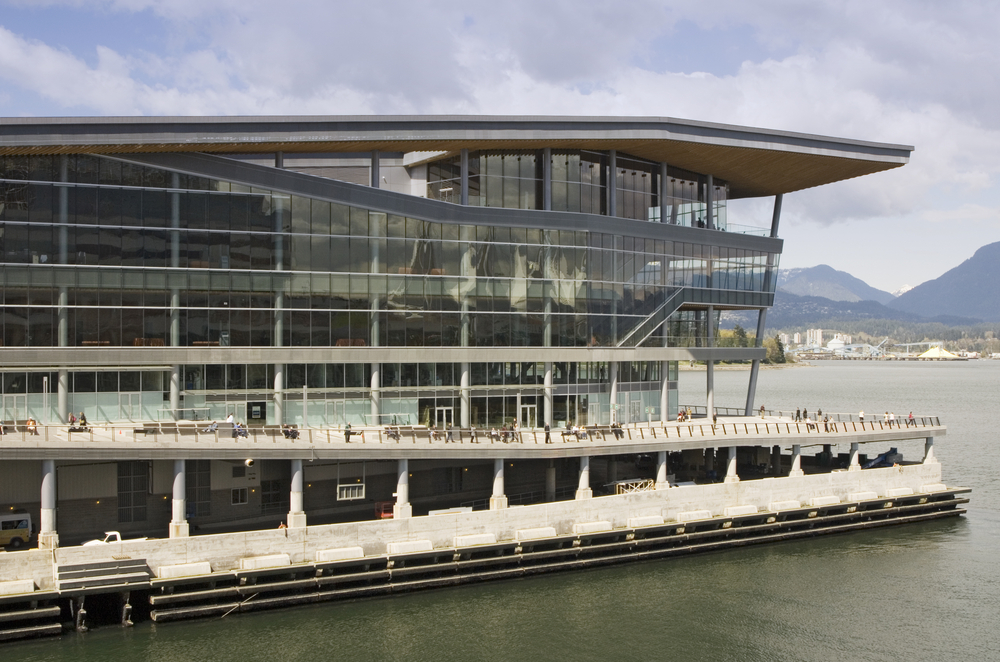 The center boasts the largest living roof in Canada and contains a whopping 400,000 indigenous plants and grasses. The garden works as an insulator during the cold winter months and reduces heat attraction in the summer. The base of the roof is lined with Douglas fir slats. The roof is home to four beehives with the bees helping the pollination process and providing honey. It is also the biggest non-industrial living roof in the whole of North America.