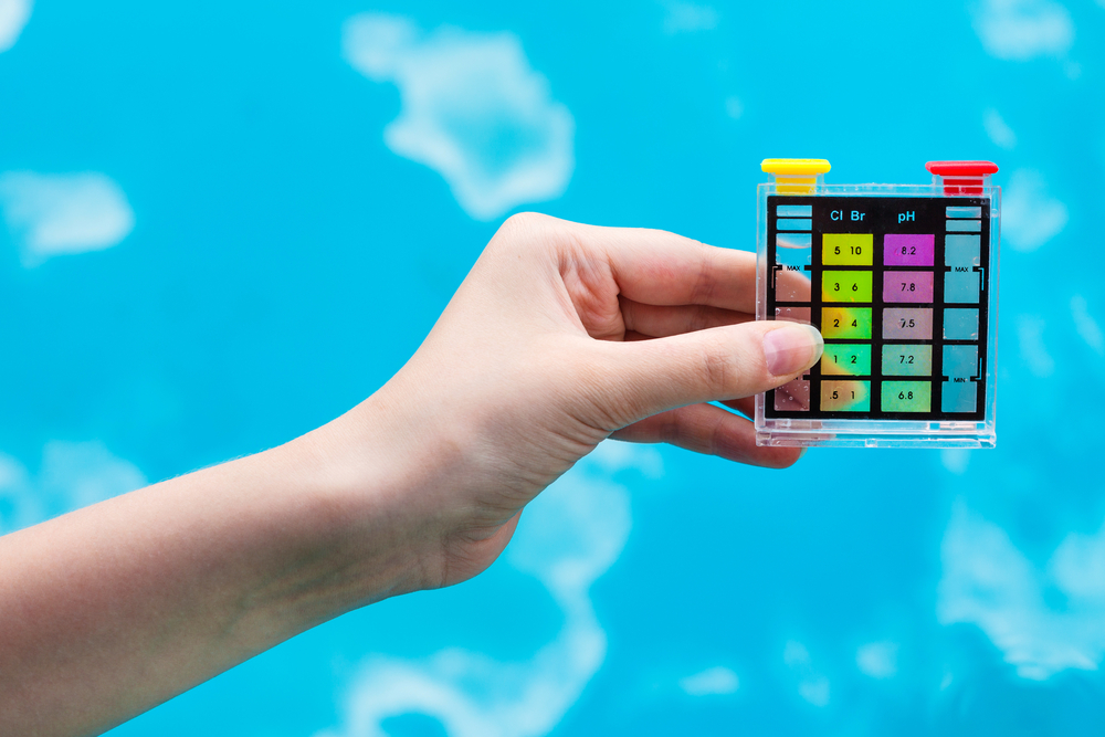 To be sure your water is healthy, you need to test its chemical balance often. An ideal reading is between 7.2 and 7.8 which is safe for people and helps your equipment work efficiently. You can do this by buying test strips that you simply dip into the pool water, watch the strip change color and compare it to a chart of different pH levels. You’ll then know exactly what you need to do, if anything, to adjust the chemical balance.